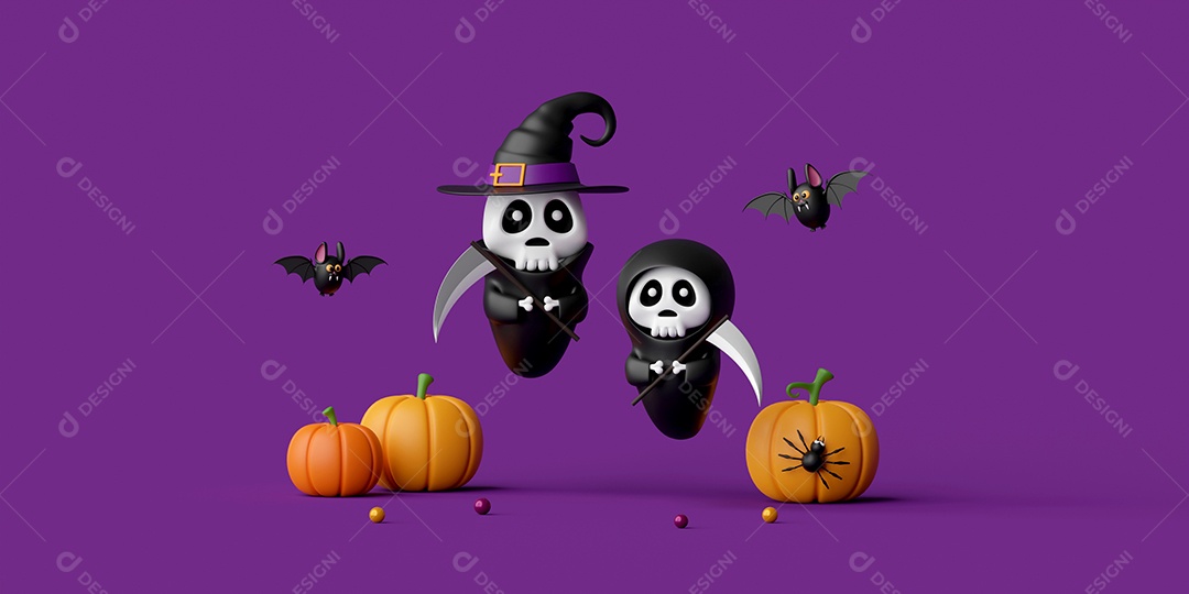ilustração 3d do fantasma assustador feliz de Halloween com abóboras