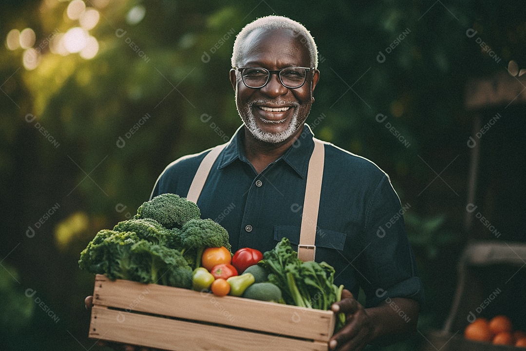 Sorrindo aposentado segurando uma caixa de madeira