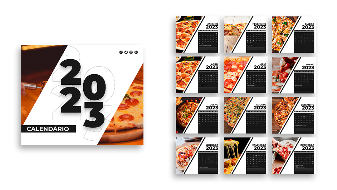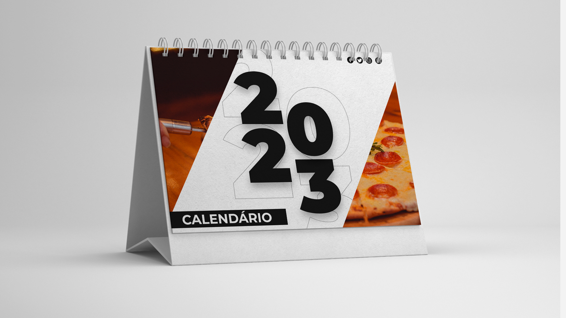 Modelo de Calendário Pizzaria 2023 PSD Editável