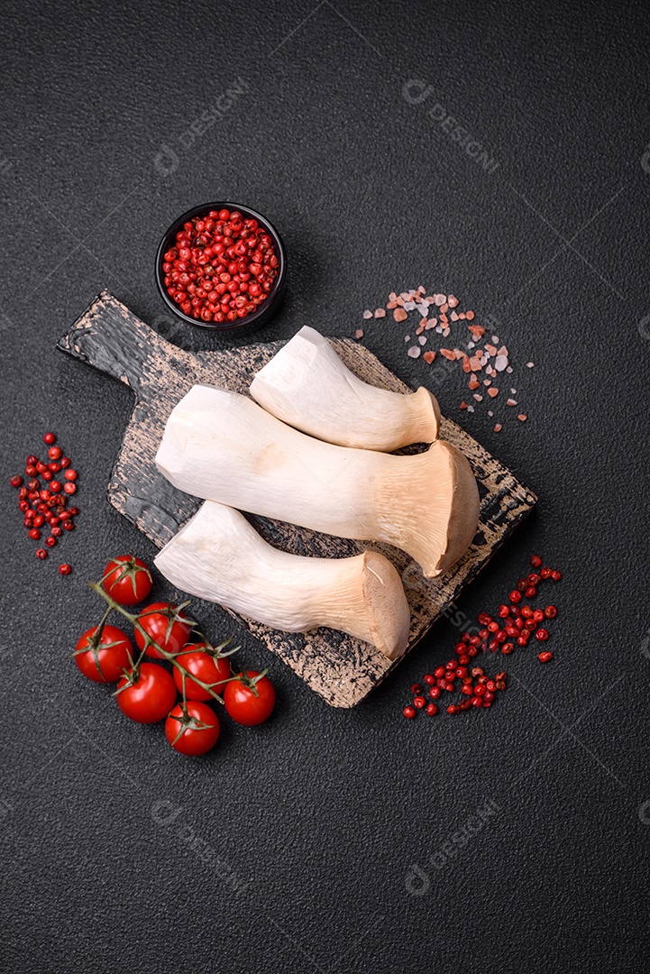 Deliciosa salsicha fresca fumada com sal e especiarias cortadas em fatias sobre um fundo escuro de concreto