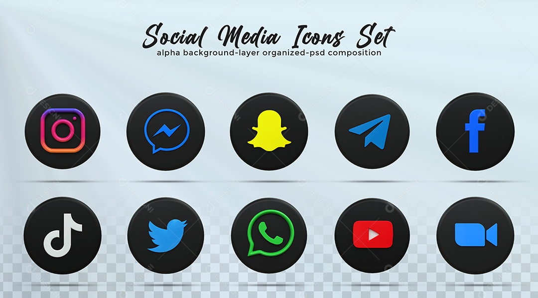 Ícones de Redes Sociais Instagram Facebook Whatsapp Youtube Zoom Elemento PSD