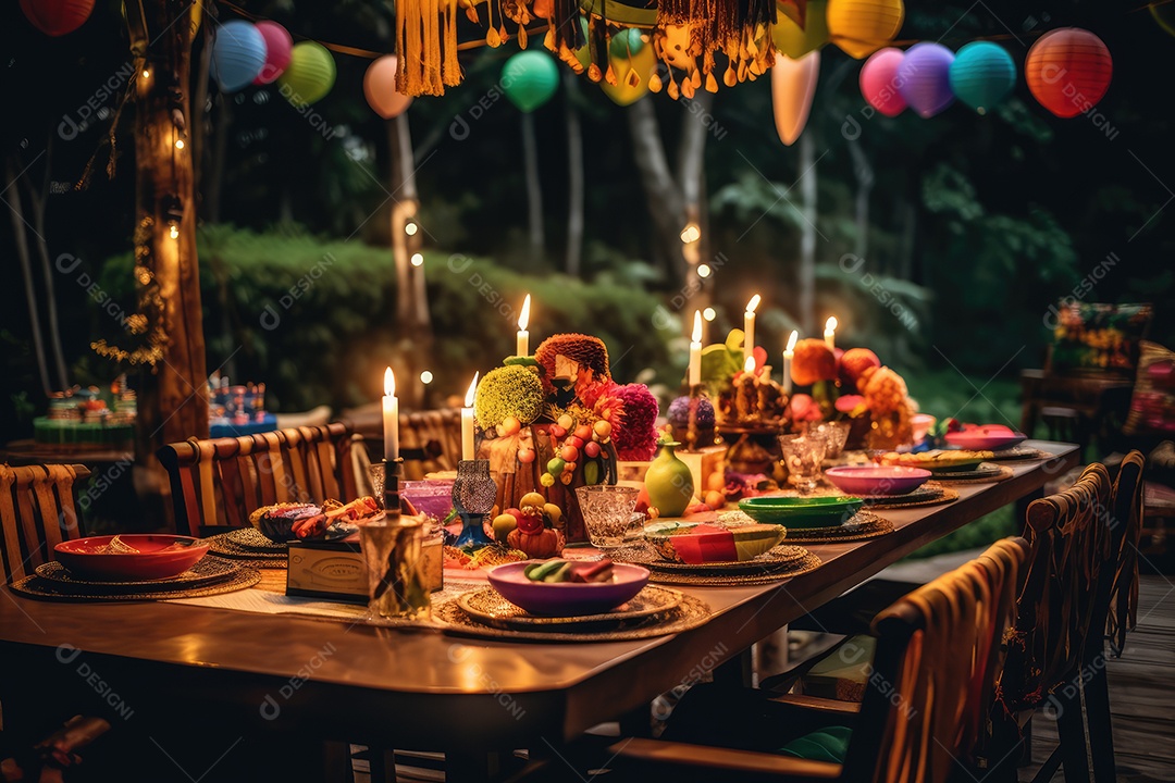 Linda decoração para Festa Junina de São João, com bandeirinhas col...