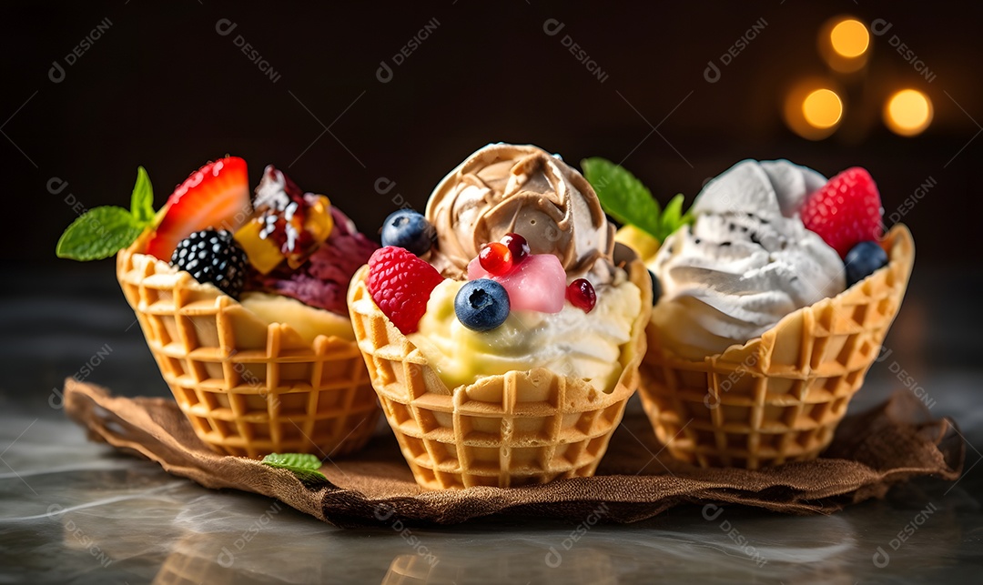 Varias Mini Casquinhas De Sorvete De Vários Sabores