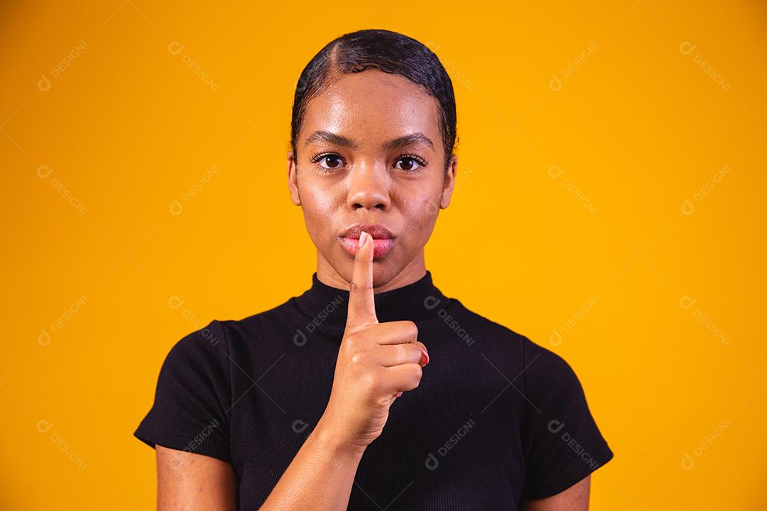 Segredo, conceito de fofoca. Jovem mulher sussurrando um segredo at...