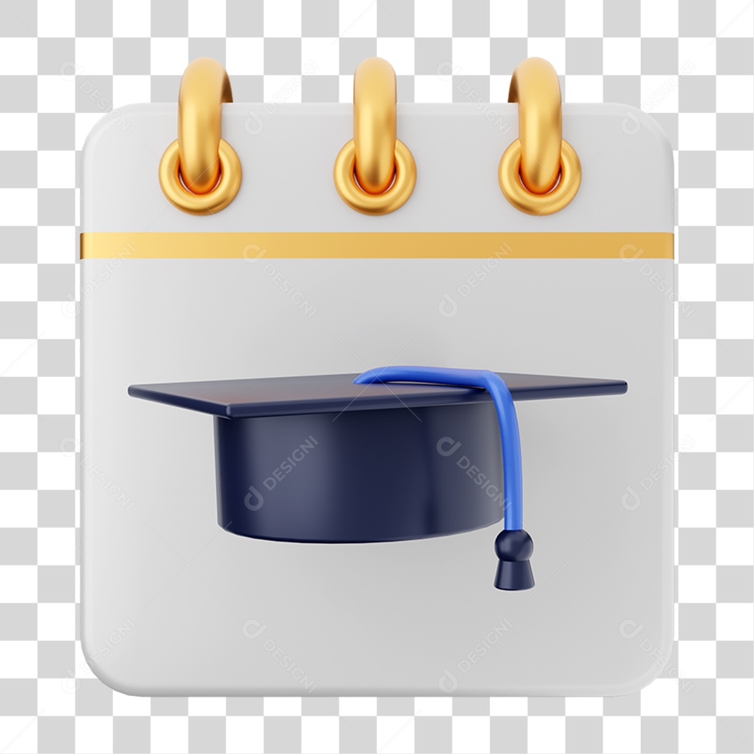 Elemento 3D Calendário Chapéu de Formatura para Composição PNG Tran...
