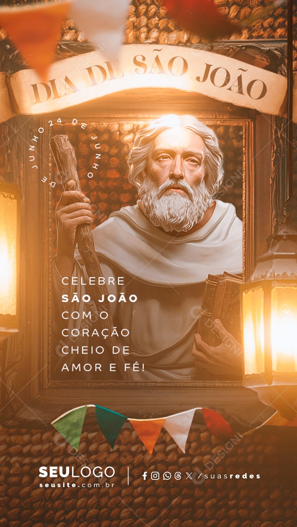 Story Dia de São João 24 de Junho Celebre com o Coração Cheio de Amor Social Media PSD Editável