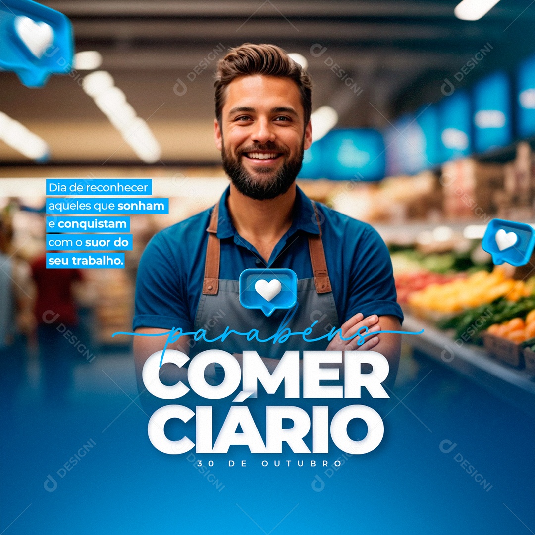 Dia do Comerciário Parabéns 30 de Outubro Social Media PSD Editável