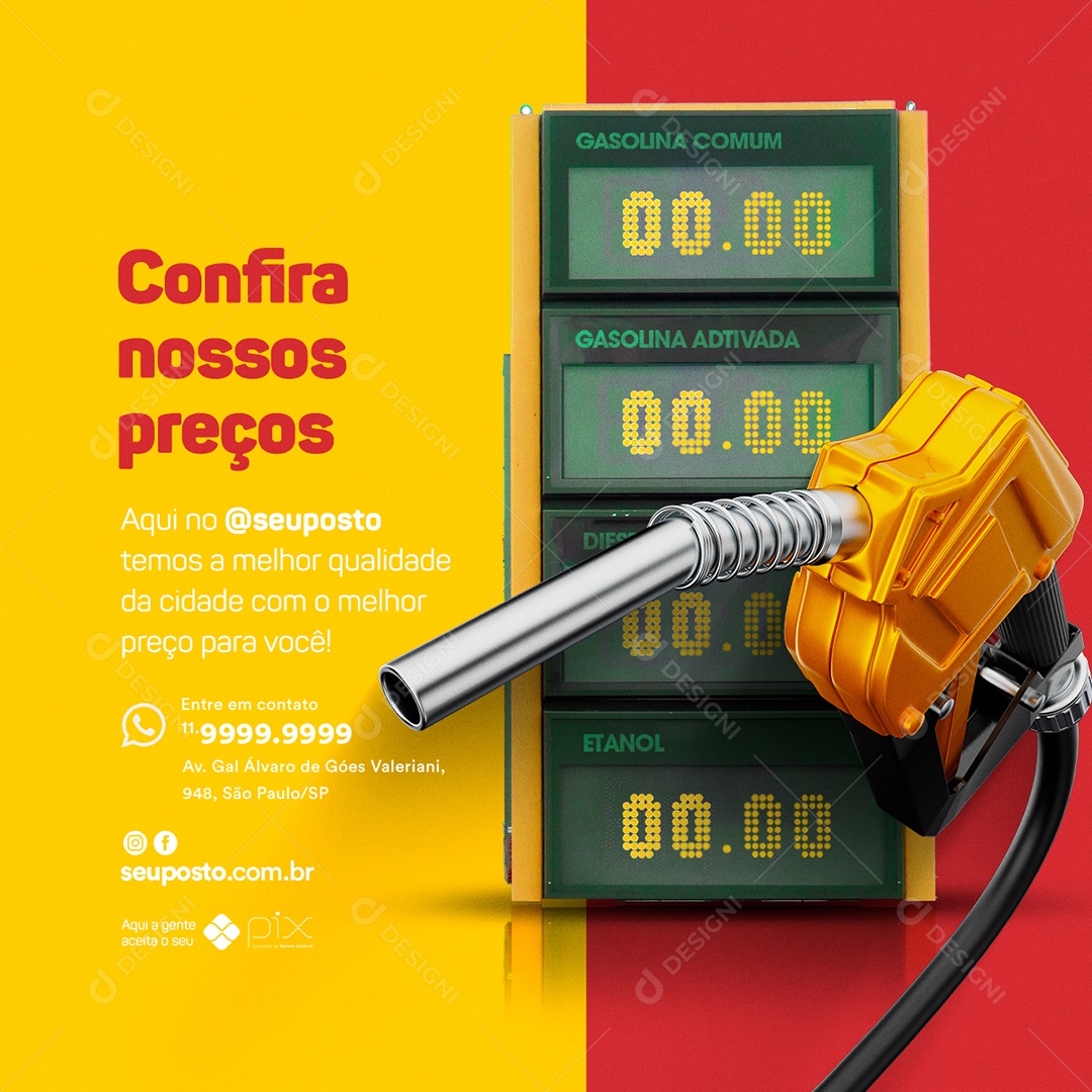Confira Nossos Preços Posto de Combustível Social Media PSD Editável