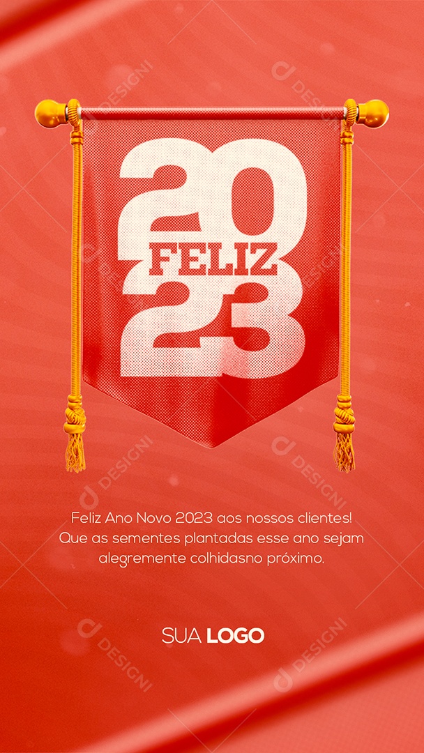 Feliz Ano Novo 2023 aos Nosso Clientes! Story Social Media PSD Edit...