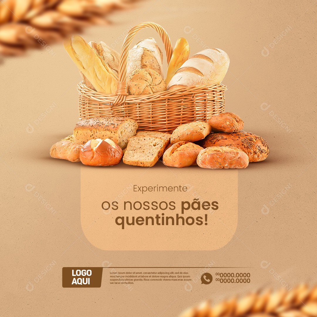 Panificadora Experimente os nossos Pães Quentinhos Social Media PSD...