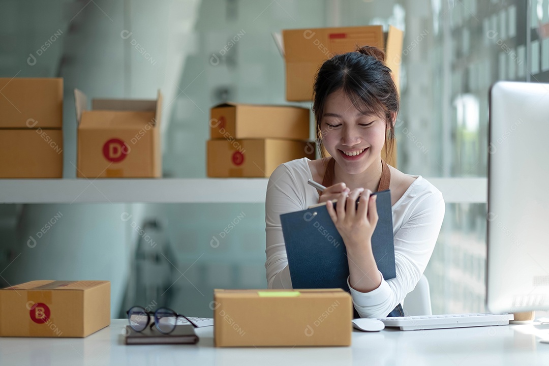 Iniciando o pequeno empresário freelancer, jovem trabalhando em escritório doméstico