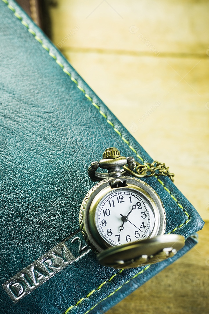 relógio de bolso A área de foco é o mostrador do relógio, estilo de...
