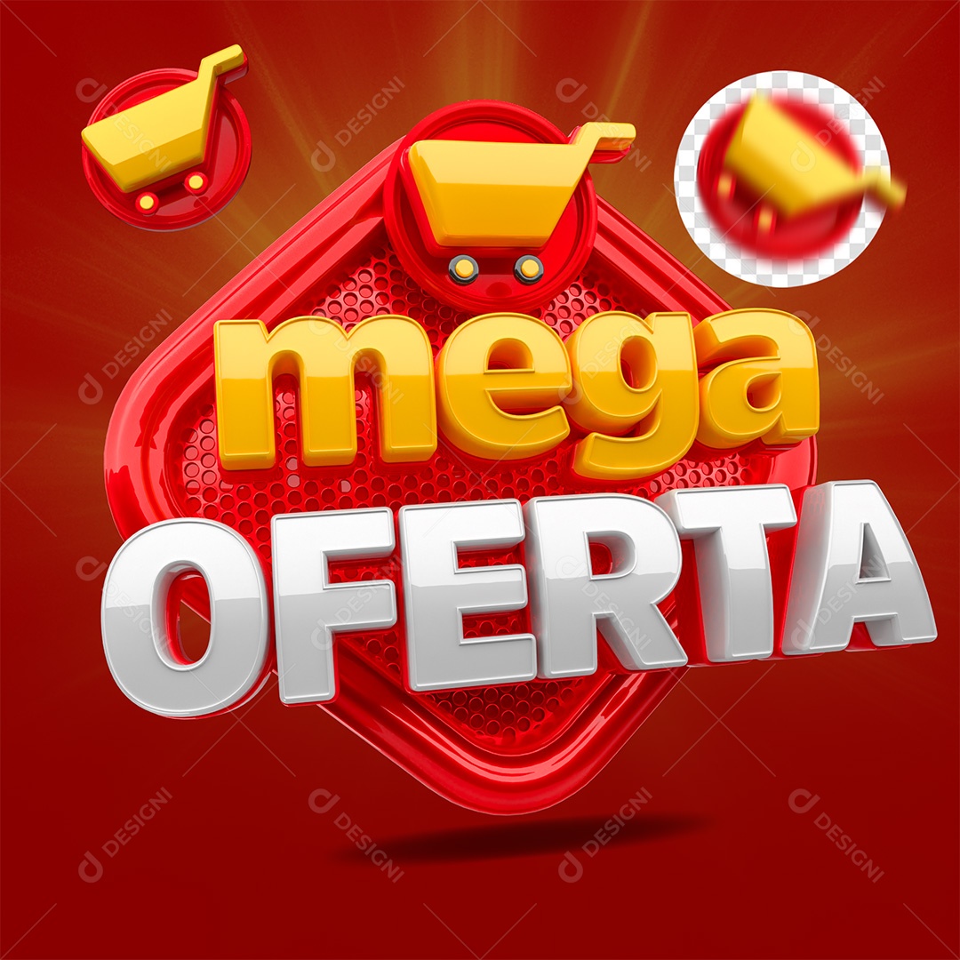 Selo 3D Mega Oferta Amarelo Vermelho e Branco para Composição PSD