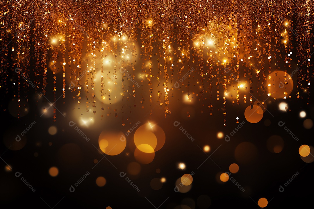 Comemore o evento no palco com cortina e brilhos dourados, feliz ano novo
