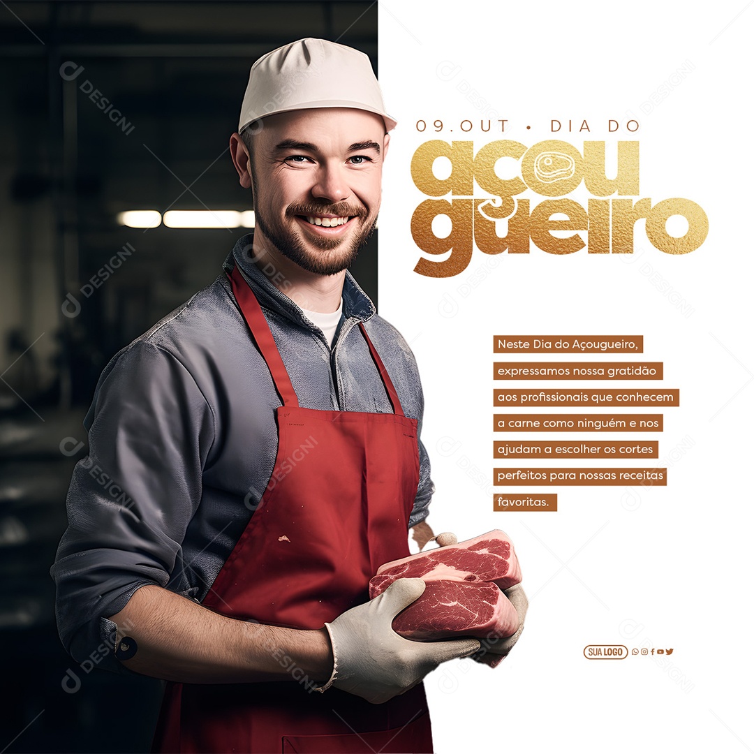 Dia do Açougueiro 09 de Outubro Expressamos nossa Gratidão aos Profissionais que Conhecem a carne como Ninguém Social Media PSD Editável