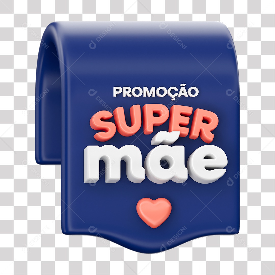 Promoção Super Mãe Selo 3D Roxo Vermelho e Branco para Composição PNG Transparente