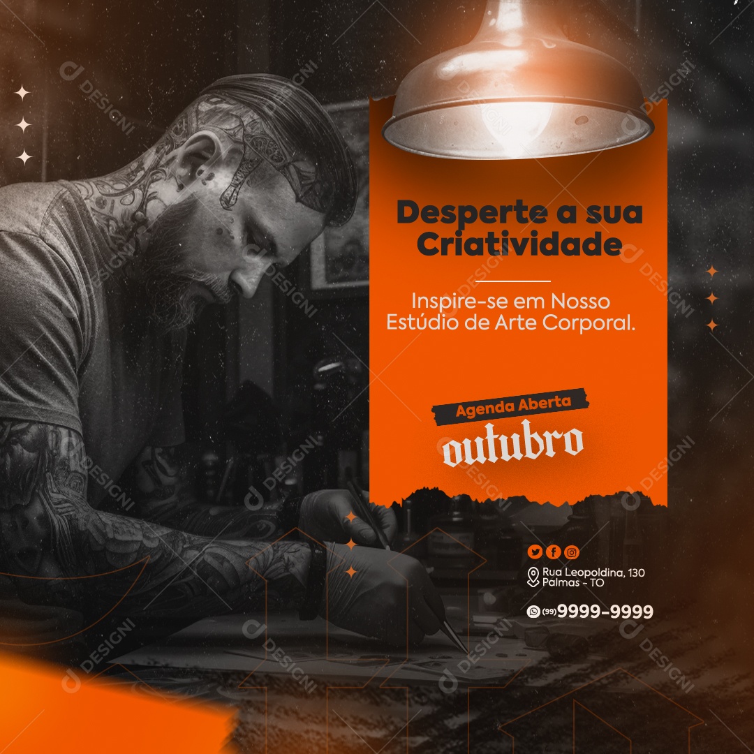 Tatuagem Desperte a Sua Criatividade Agenda Aberta Outubro Social Media PSD Editável