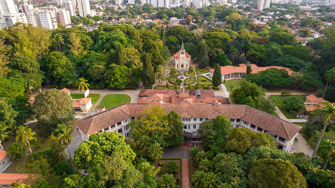 Vista aérea do Parque Vicentina Aranha, Capela Sagrado Coração de Jesus, antigo sanatório transformado em parque municipal.