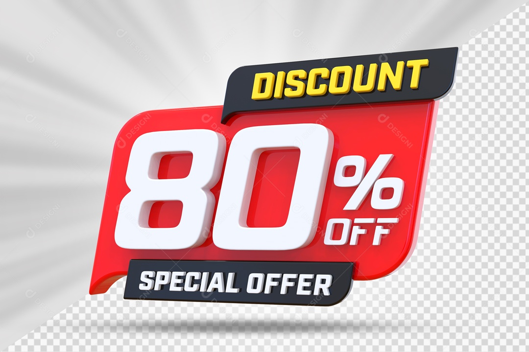 Selo 3D Vermelho Discount Special Offer 80% Para Composição PSD