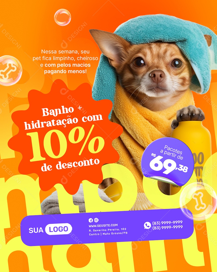 Pet Shop Promoção de Banho e Hidratação Social Media PSD Editável