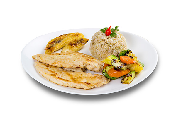 Peito de Frango, Arroz, Feijão, Batata Frita e Farofa com Acompanha...