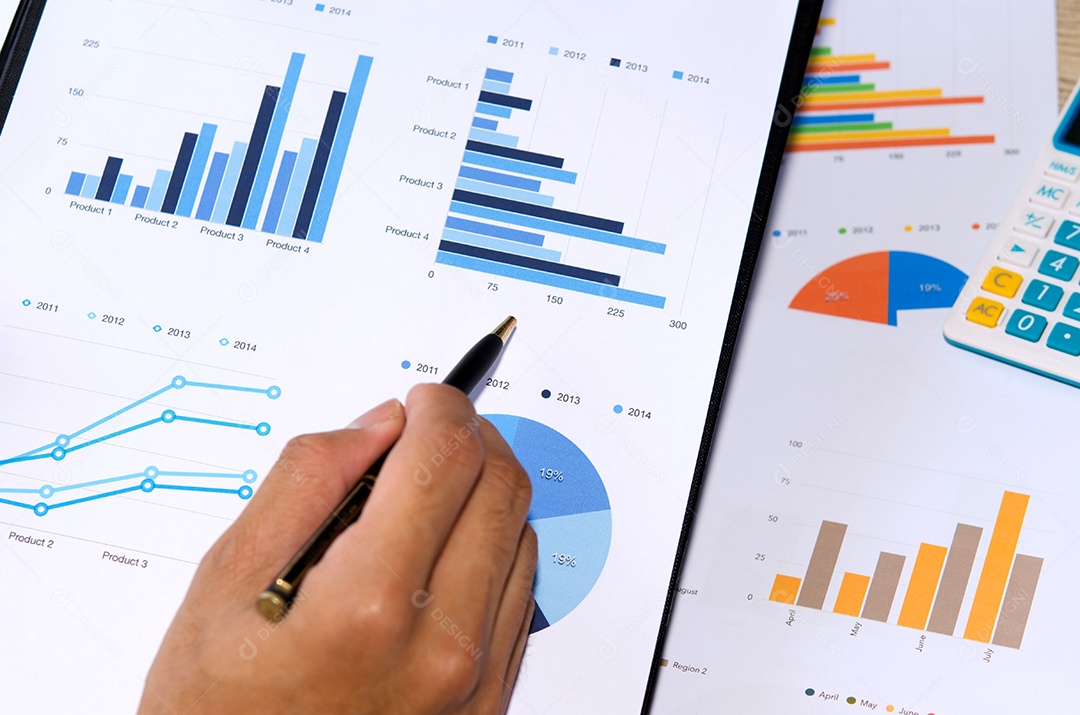 Gráfico de negócios e relatório de análise de caneta. Contabilidade