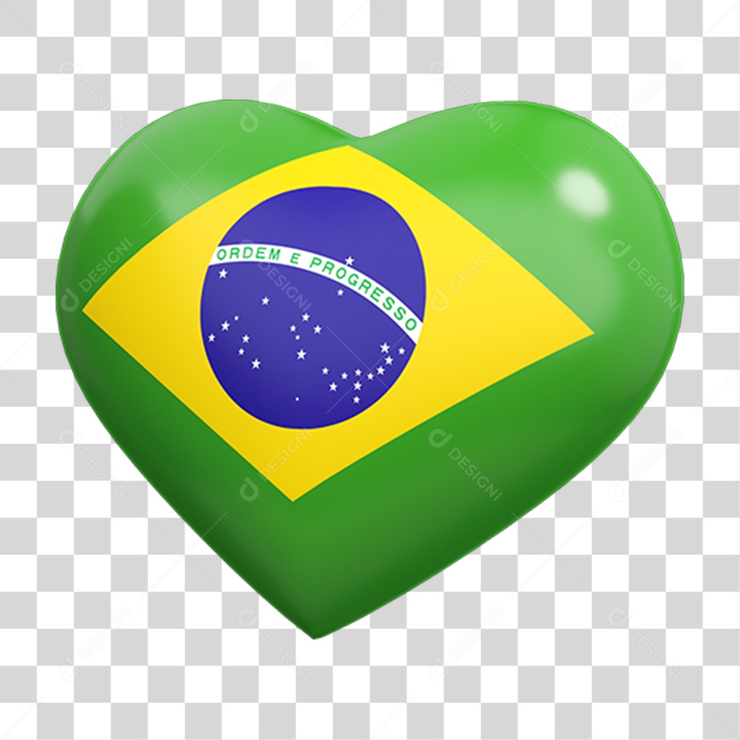 Elemento 3D Coração Bandeira do Brasil PNG Transparente
