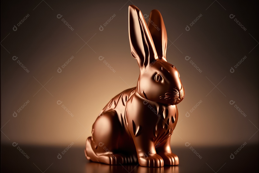 Coelhinho da páscoa de chocolate ao leite com desenhos em relevo, celebração da páscoa