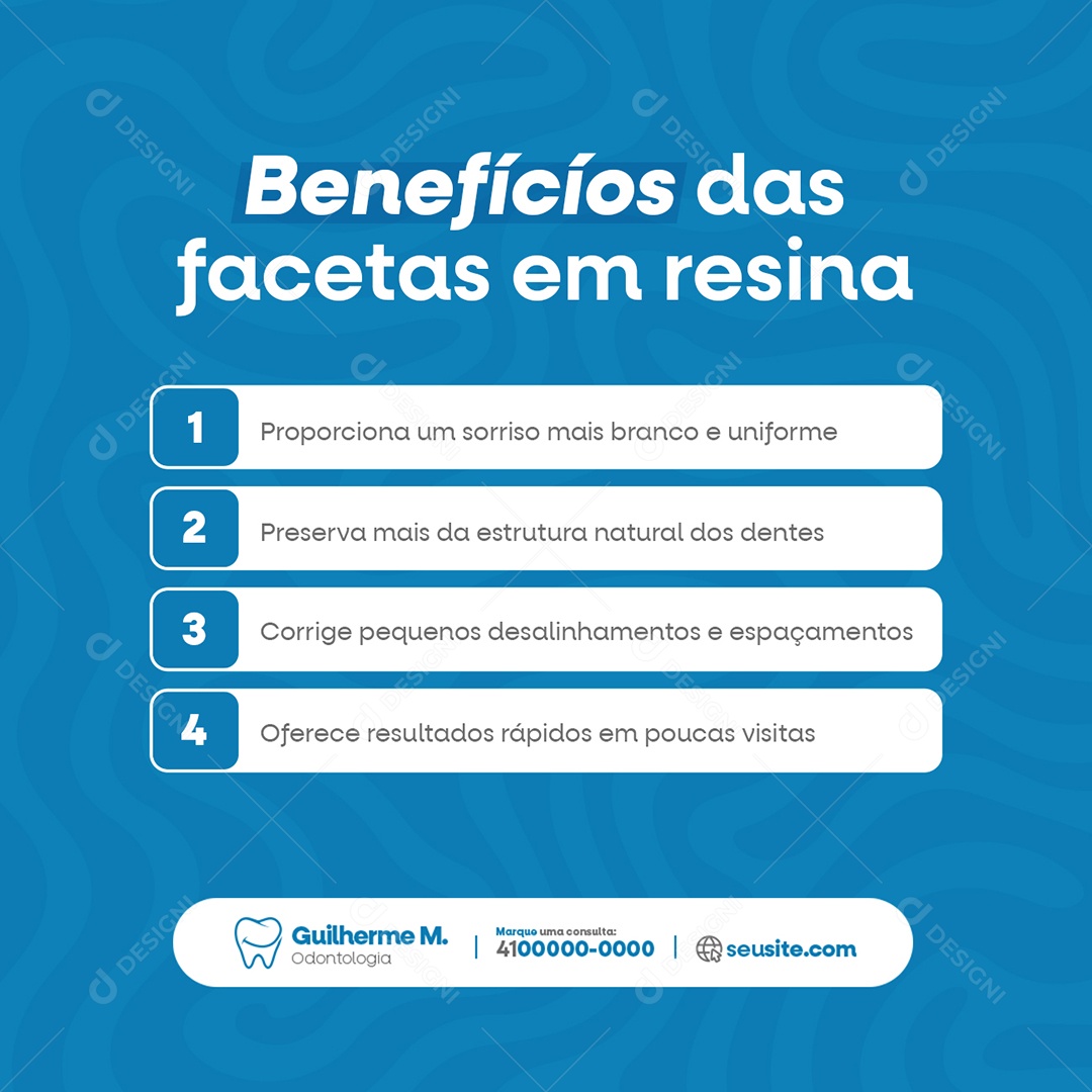 Odontologia Benefícios das Facetas em Resina Social Media PSD Editável