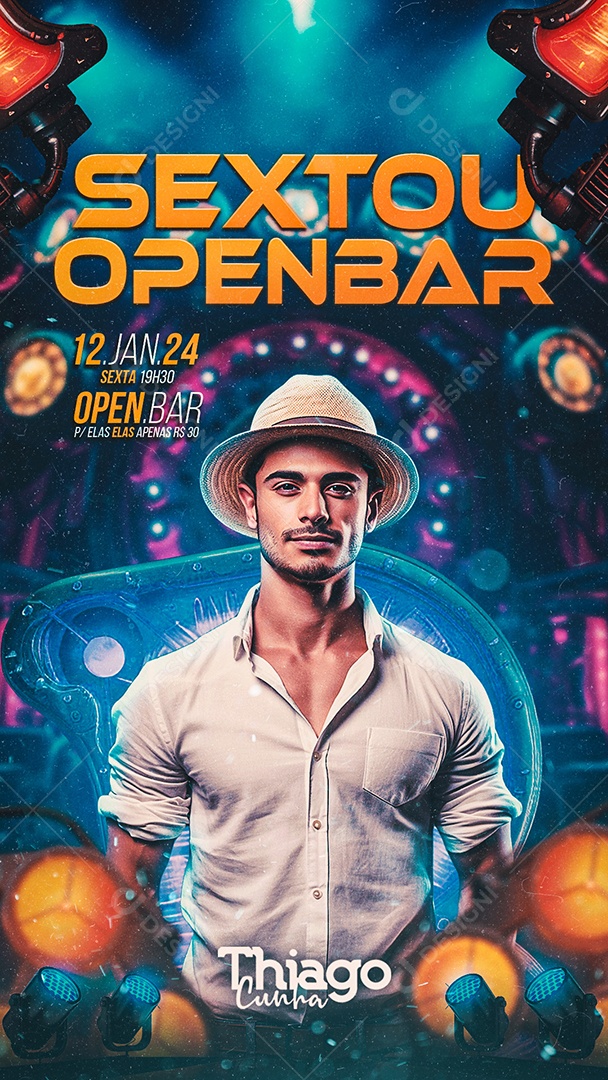 Story Flyer Sextou Open Bar Thiago Cunha Social Media PSD Editável