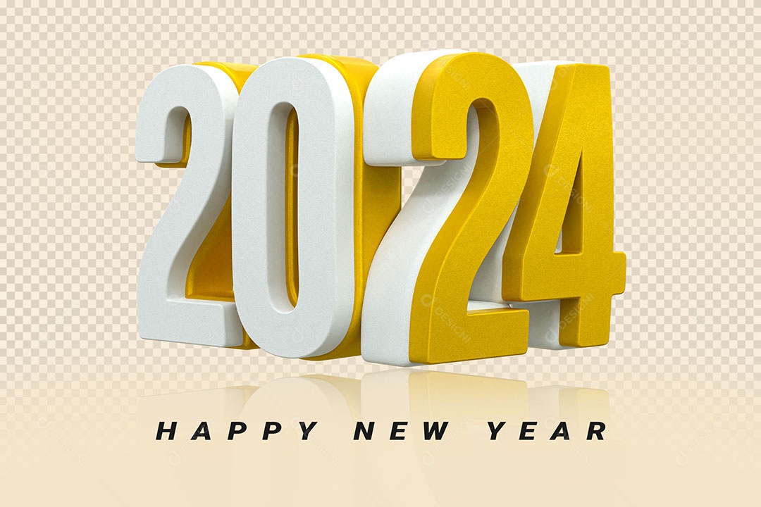 Número 3D 2024 Branco e Dourado Feliz Ano Novo Para Composição PSD