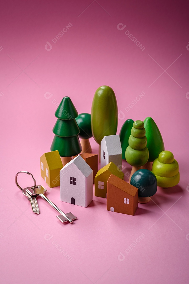 Uma casinha de madeira como ideia para investir na casa própria e atingir o objetivo de comprar um imóvel. Plano de fundo para sua ideia