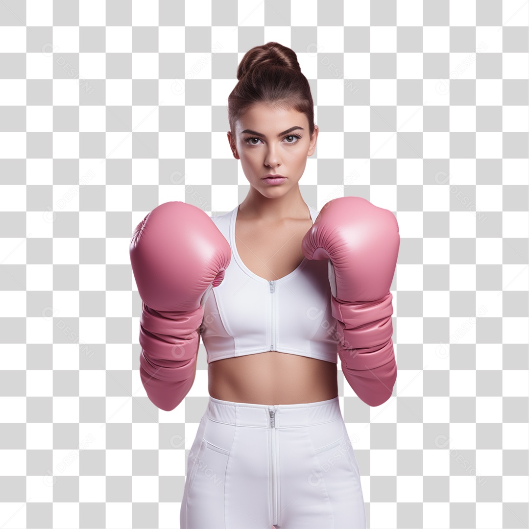 Conscientização do Outubro Rosa Mulher com Luvas de Boxe PNG Transp...
