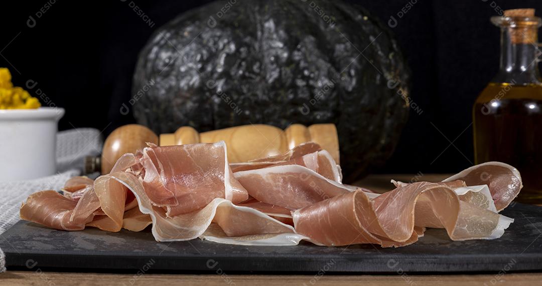 Presunto de parma cru e purê de abóbora Imagem JPG