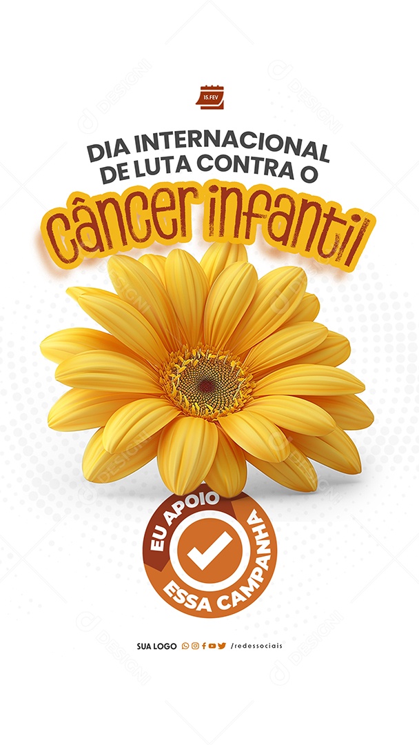 Story Dia internacional de Luta Contra o Câncer Infantil 15 de Fevereiro Eu apoio Social Media PSD Editável