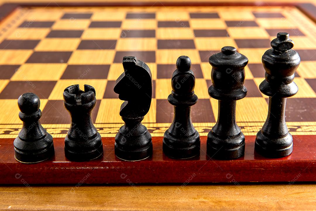 Peças de xadrez de madeira, jogo de tabuleiro e estratégia, jogo de...