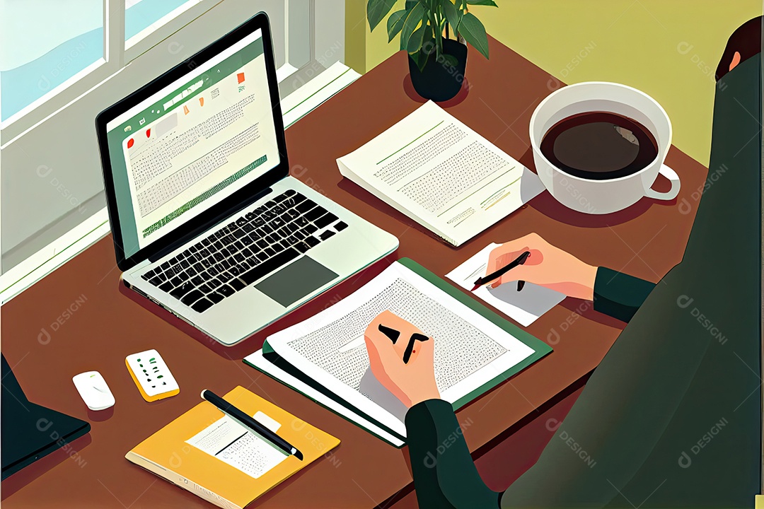 Trabalho à distância, trabalhando no conceito de casa. Mão de homem...