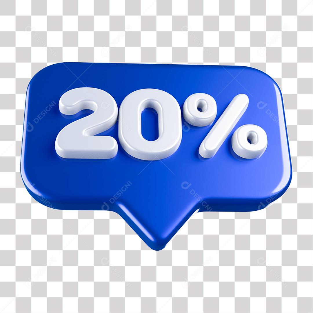 Botão Azul 20% por cento de Desconto Elemento 3D para Composição PNG Transparente