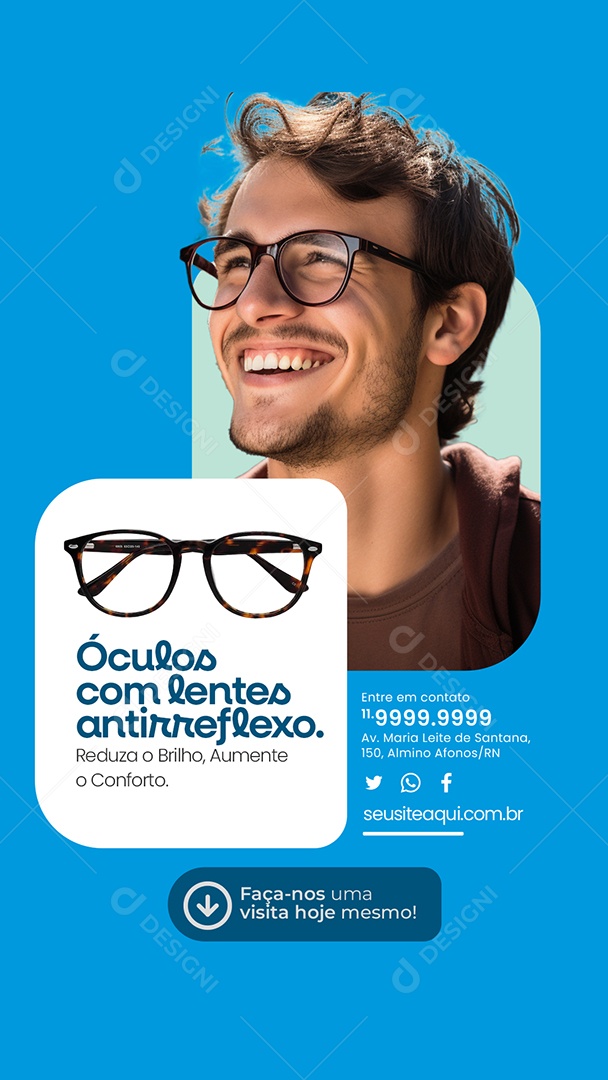 Story Ótica Faça nos uma Visita Hoje Mesmo Óculos com Lentes Antirreflexo Social Media PSD Editável