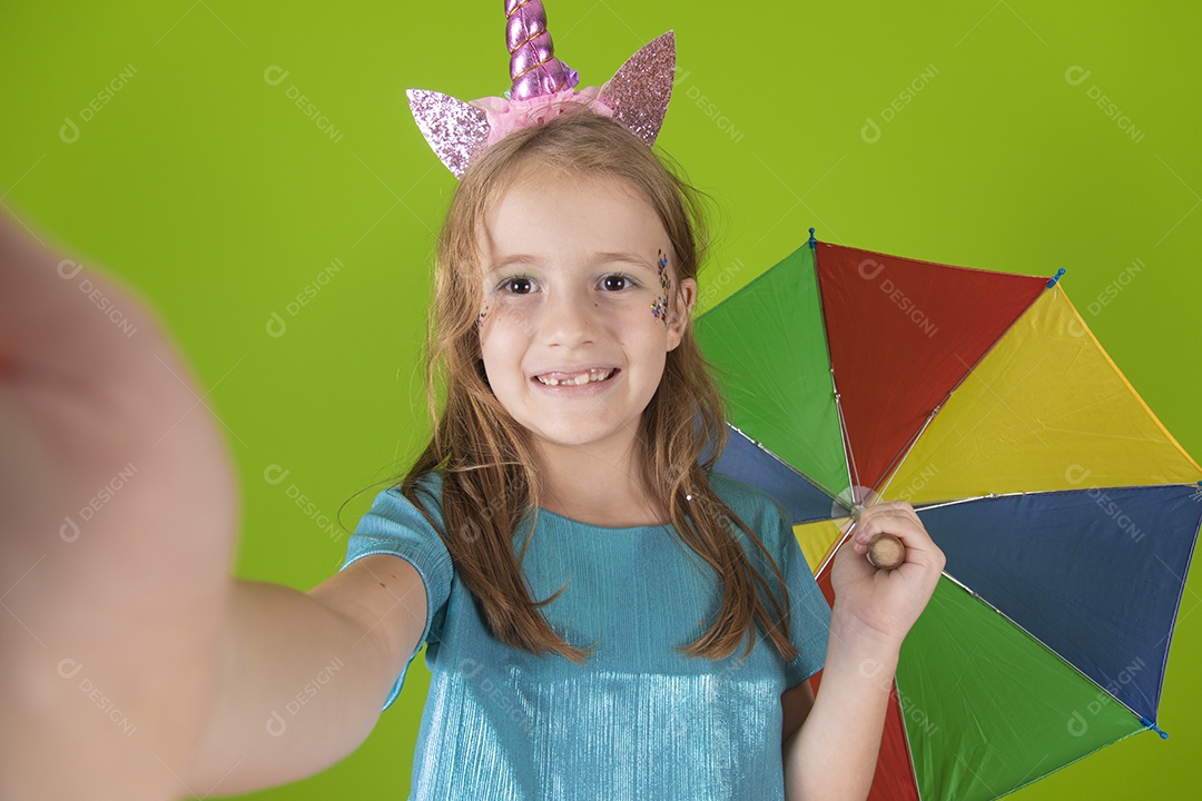 Linda menina feliz e sorridente usando fantasia de carnaval