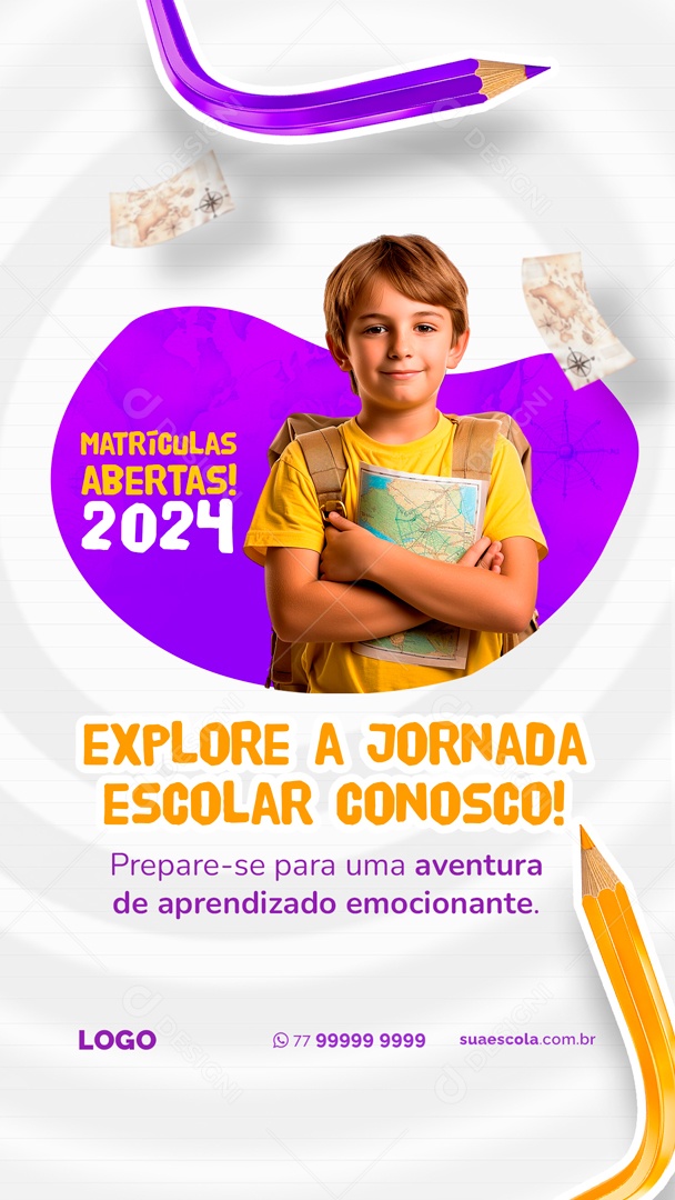 Story Volta às Aulas Matrículas Abertas 2024 Social Media PSD Editável