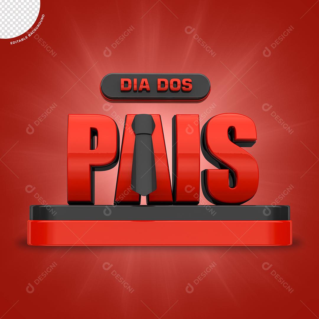Dia dos Pais Selo 3D Vermelho e Preto para Composição PSD