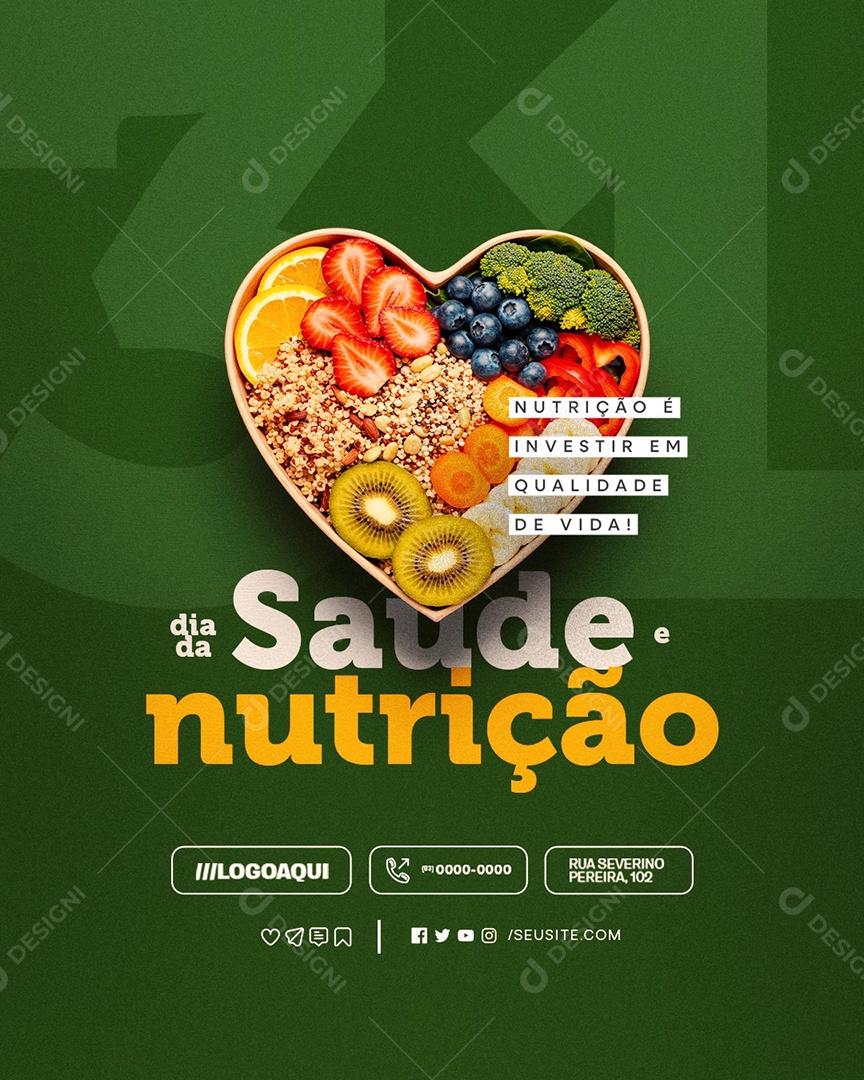 Dia da Saúde e Nutrição 31 de Março Investir em Qualidade de Vida Social Media PSD Editável