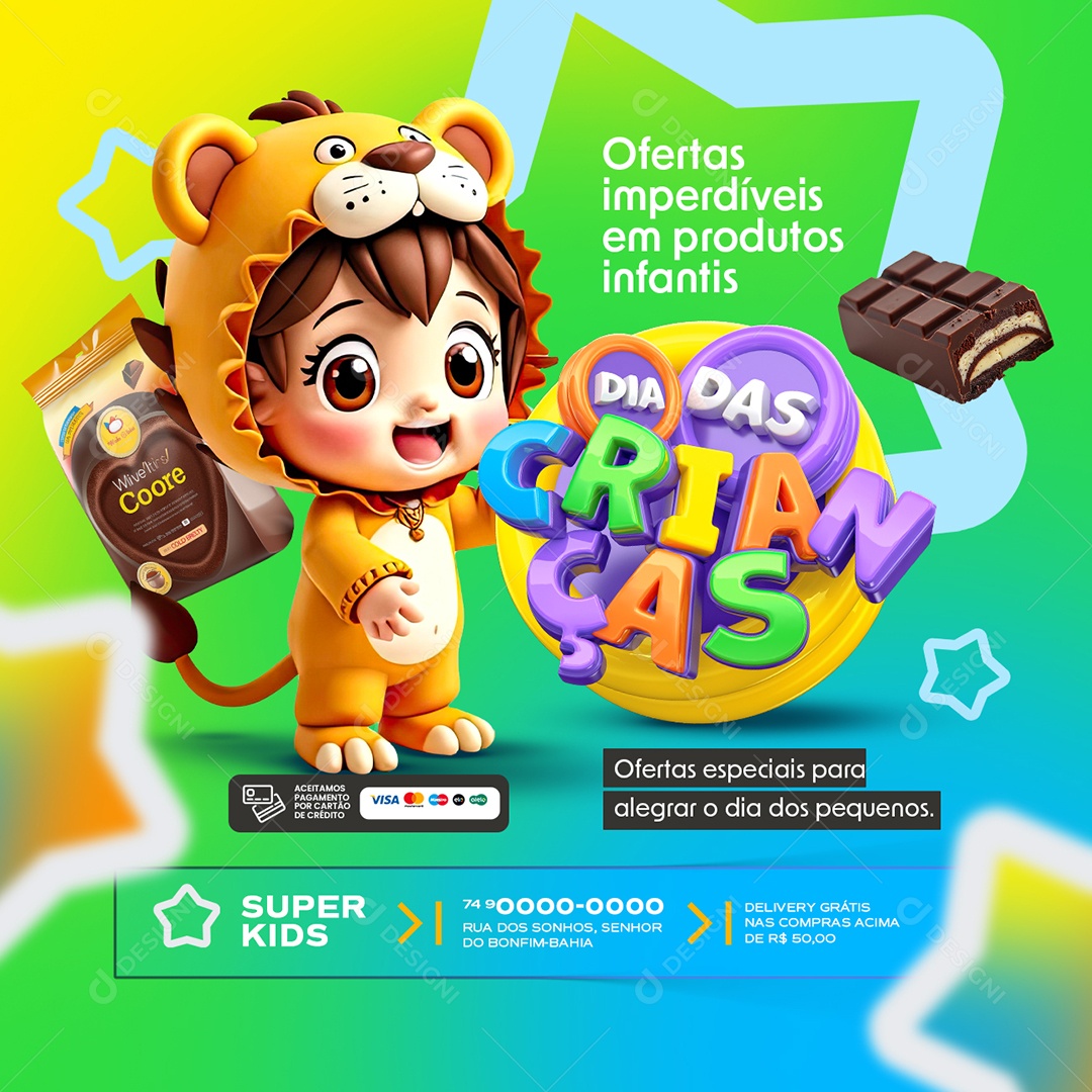 Dia das Crianças Supermercado Ofertas Imperdíveis Social Media PSD Editável