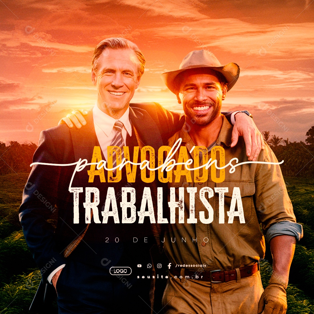 Dia do Advogado Trabalhista 20 de Junho Parabéns Social Media PSD Editável