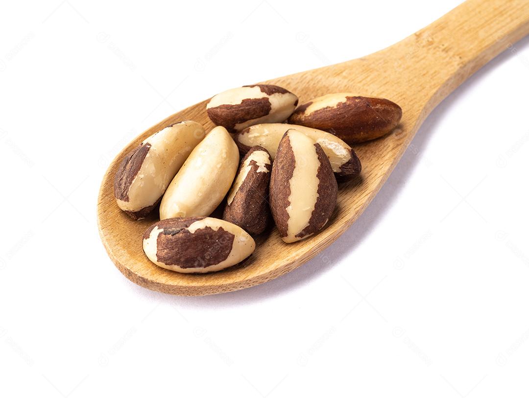 Castanha-do-pará em uma colher isolada sobre fundo branco