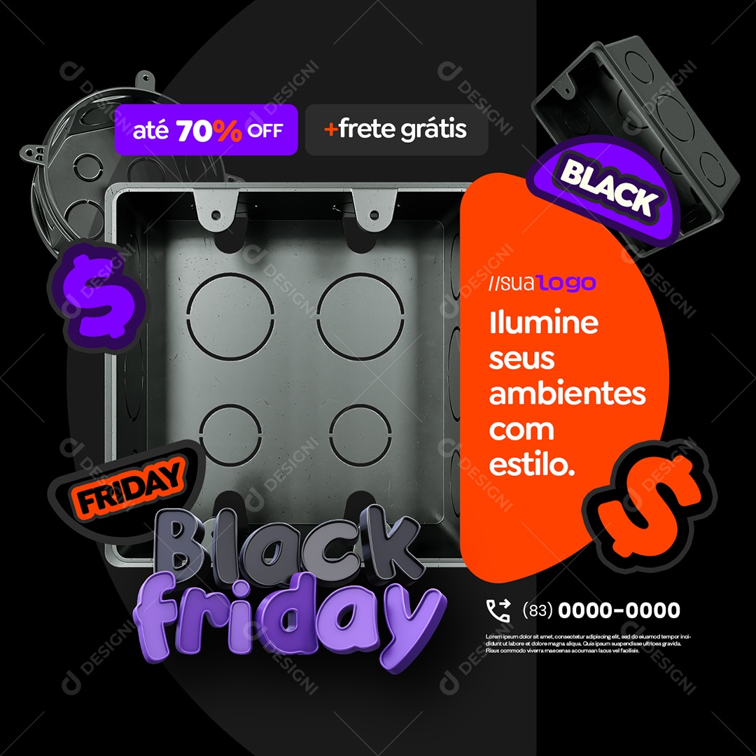 Black Friday Loja de Materiais Elétricos Ilumine seus Ambientes Social Media PSD Editável