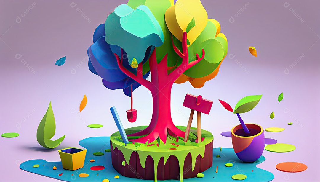 Projeto dos desenhos animados ilustração de plantação de árvores colorido Dia da Terra a importância de amar a natureza