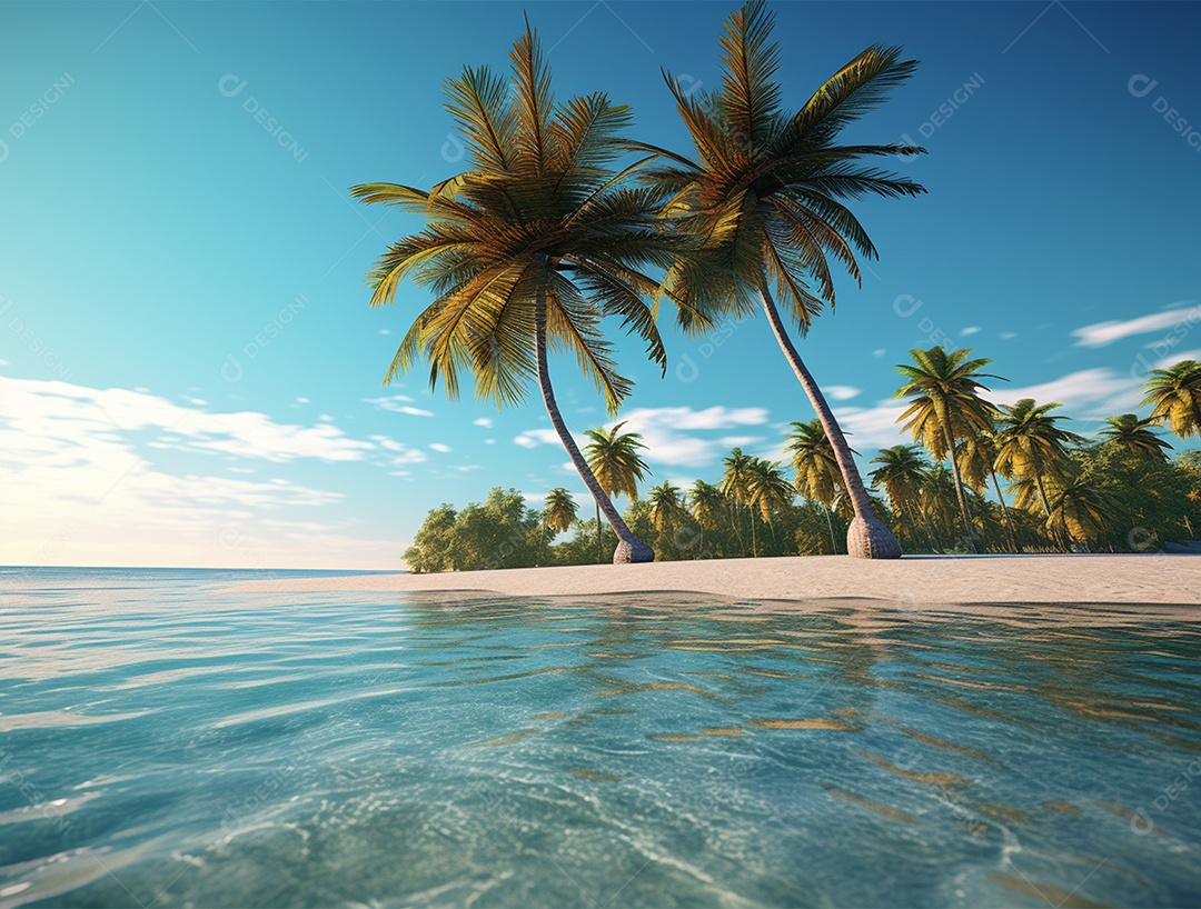 Coqueiro á beira-mar em um dia ensolarado.