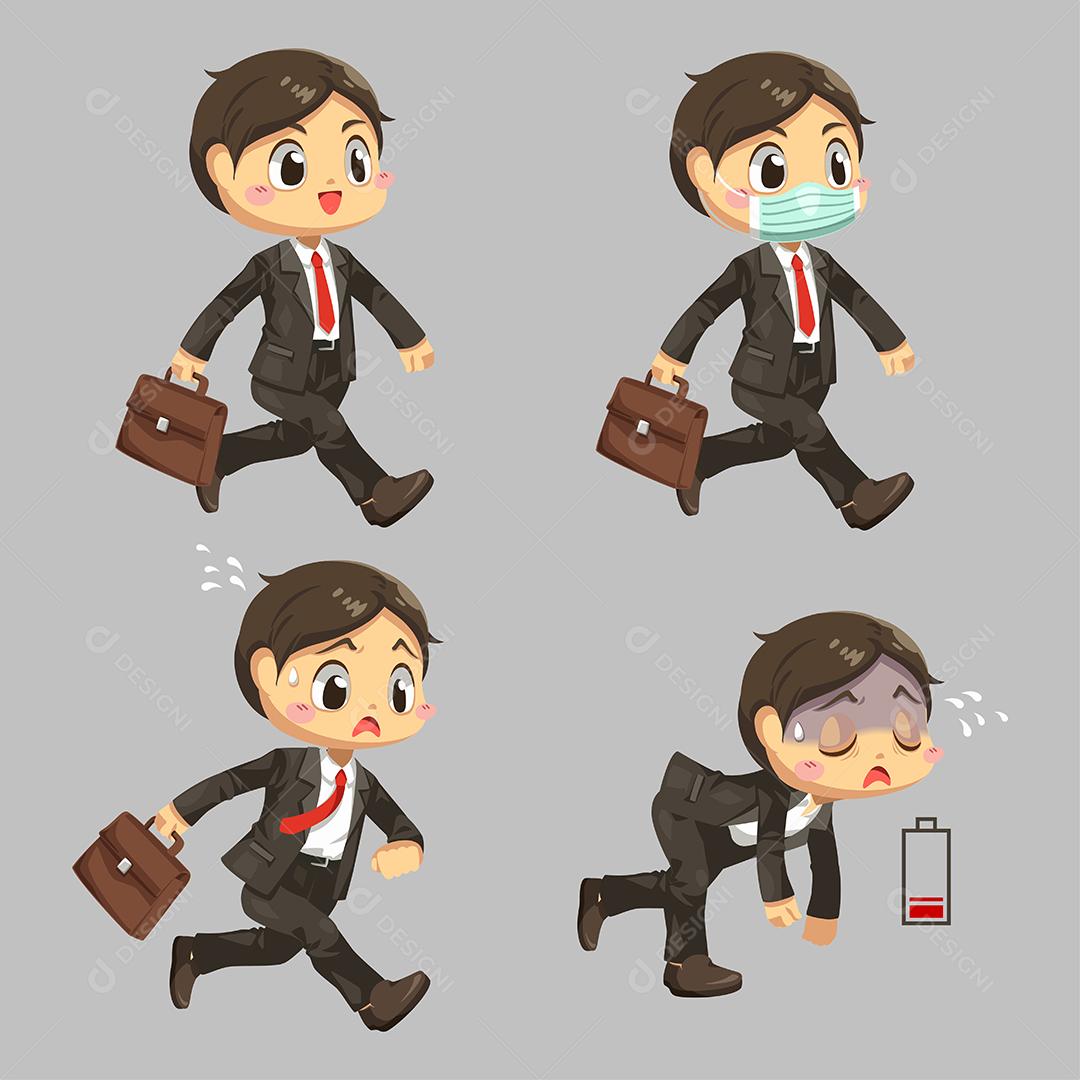 Empresário usando uma máscara protetora segurando pasta pressa andando na hora do rush na ilustração vetorial plana de personagem de desenho animado em fundo branco